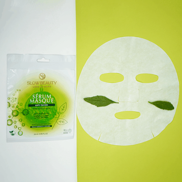 Offrez à votre peau un coup d’éclat instantané avec notre masque en feuille. Sa texture fine et rafraîchissante pénètre en profondeur pour purifier et éclaircir votre teint. Le Thé Vert et les AHA agissent en synergie pour réduire visiblement les taches pigmentaires. Résultat : une peau plus lumineuse, plus uniforme et visiblement revitalisée dès les premières utilisations.